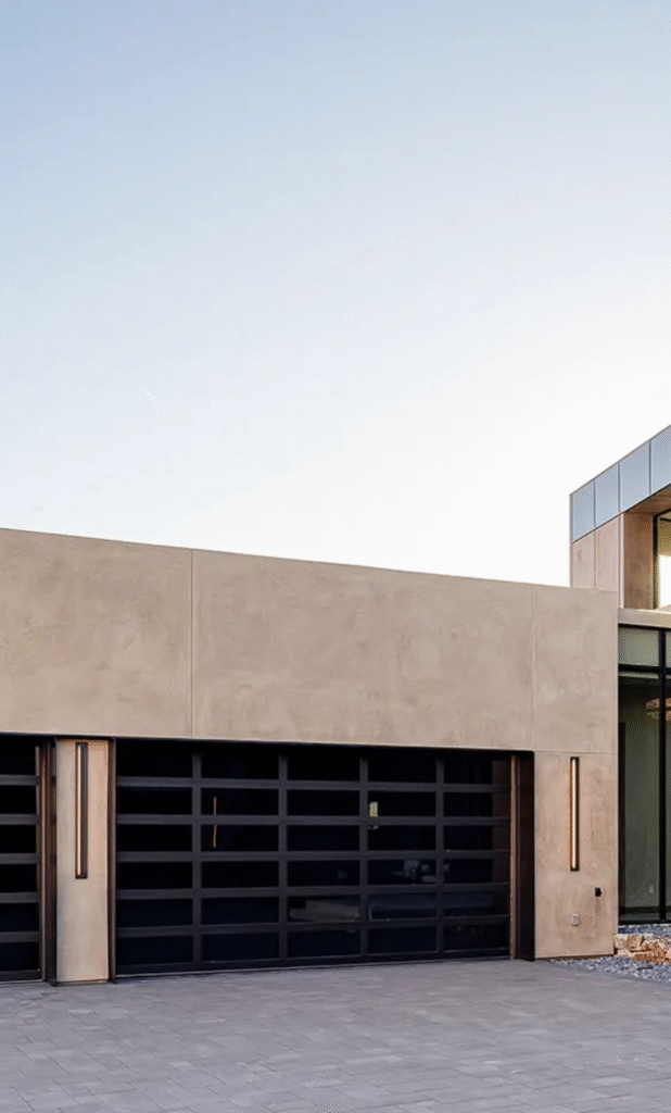 Steel garage doors are a popular choice for modern homes due to their durability and clean appearance. Smooth or grooved steel panels create a refined and minimalist look while offering excellent strength and low maintenance.