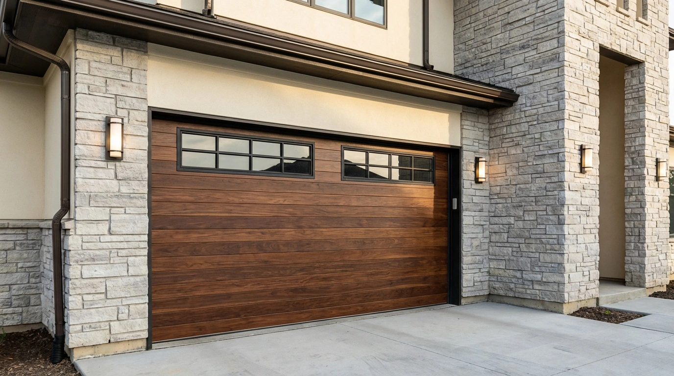 For homeowners who want warmth without sacrificing modern style, wood and composite garage doors offer the perfect balance. Horizontal plank designs and natural textures create a modern look with timeless appeal.